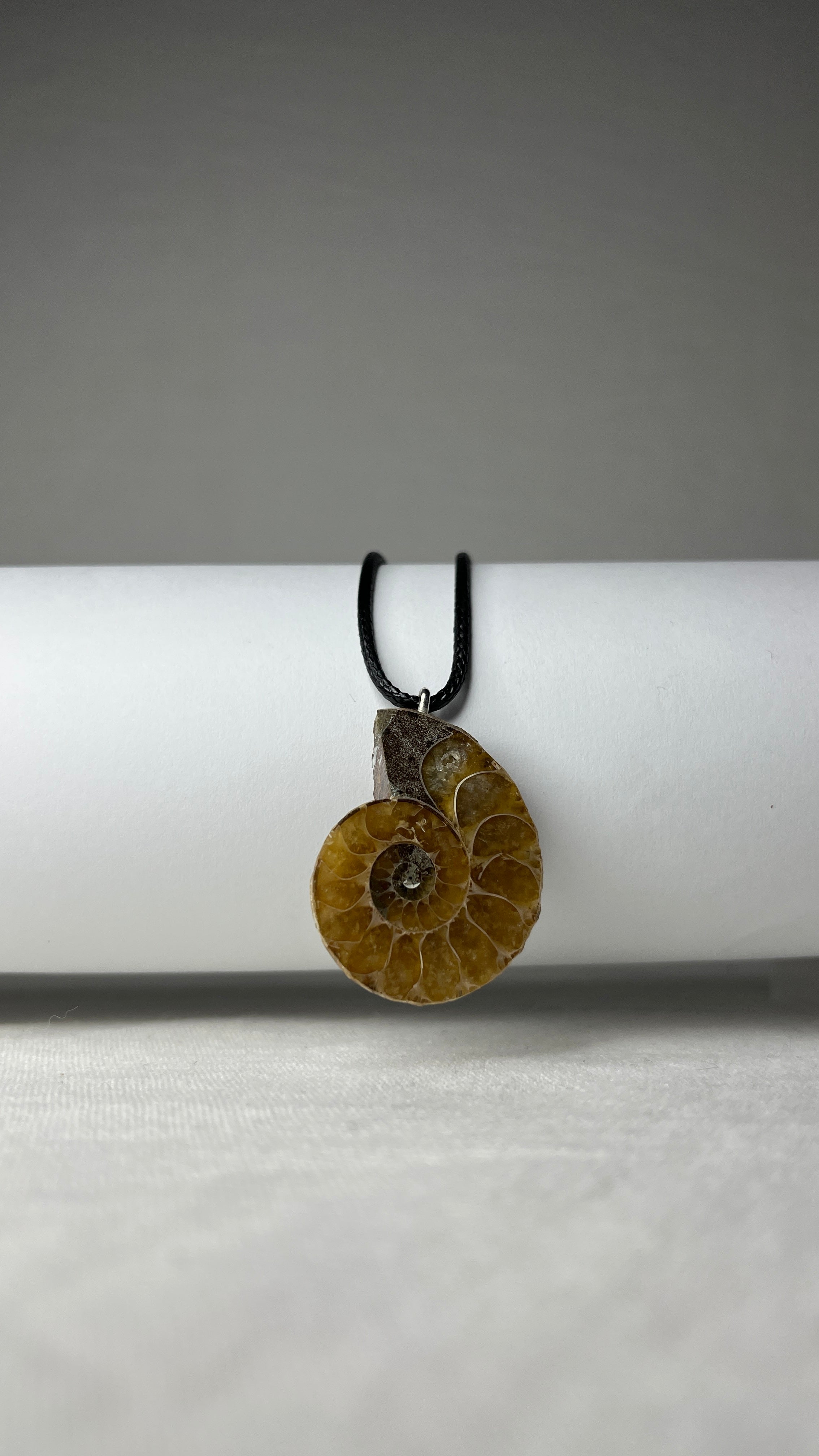 Deze ketting met ammoniet stimuleert persoonlijke groei en creatieve energie.
