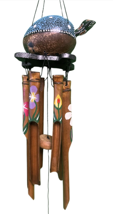 Breng een speelse en rustgevende sfeer in huis of tuin met deze bamboe windgong met kleurrijke schildpad.