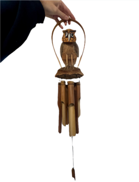 Bamboe Windgong met Uil – Rustgevende Klanken & Wijsheid